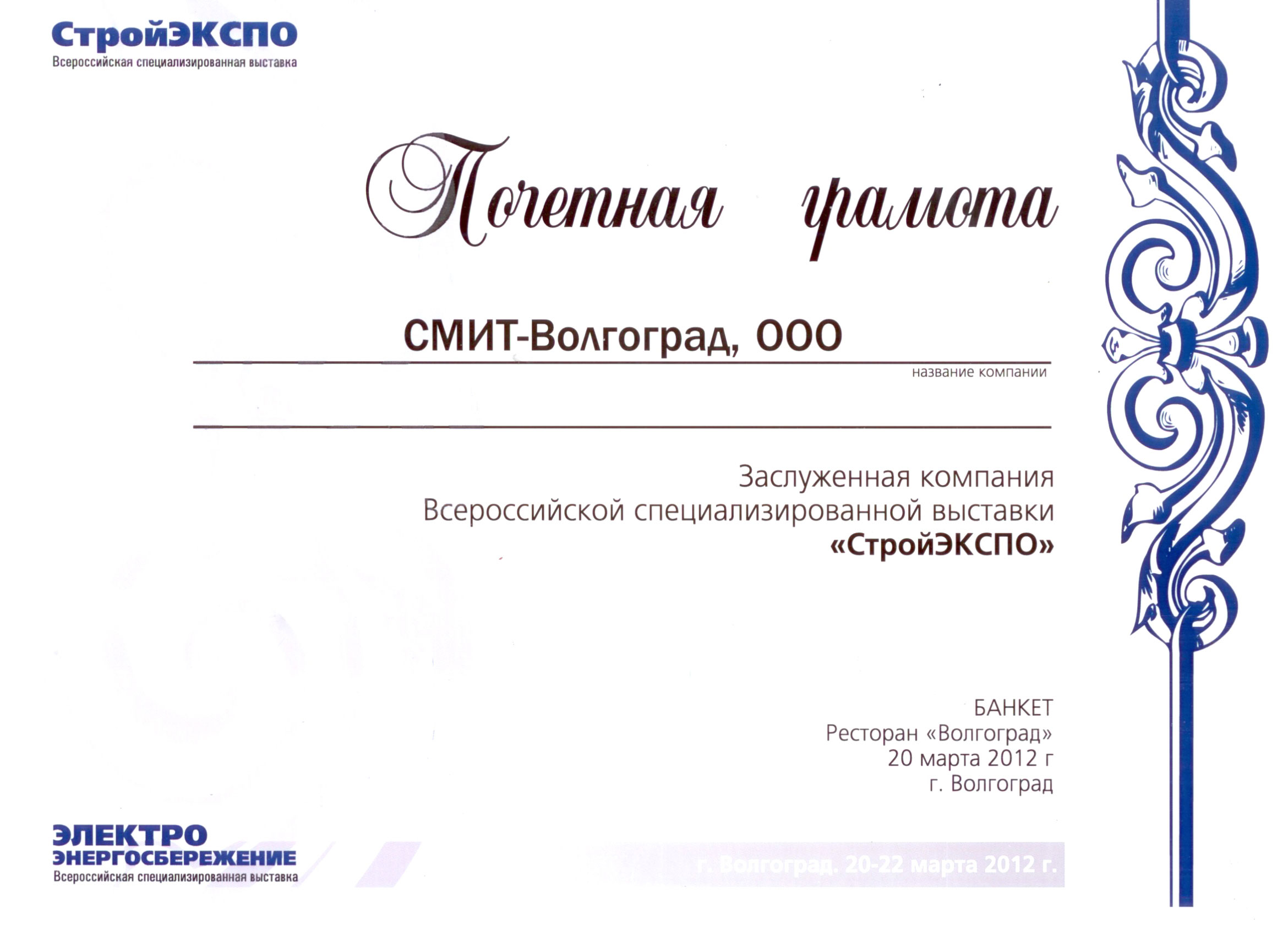 Участие ООО «СМИТ Волгоград» в Всероссийской специализированной строительной выставке «СтройЭКСПО»