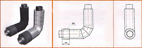 Отводы с тепловой изоляцией из пенополиурета полиэтиленовой и оцинкованной трубе-оболочке